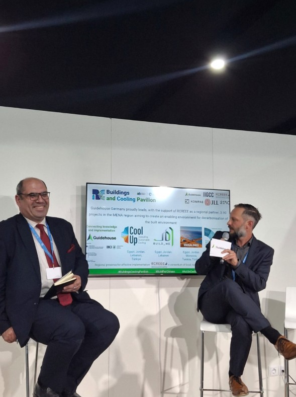 In the first panel on November 14th, organised by United Nations Environment Programme (UNEP)'s Global Alliance for Buildings and Construction (GlobalABC), we highlighted the critical importance of data availability across the building sector to accelerate financing of innovative solutions to decarbonise the environment. Moritz Schaefer (Guidehouse) and Dr. Maged Mahmoud (RCREEE) presented BUILD_ME's achievements, including the creation of a building typology, the development of the BEP Tool, and the integration of an Energy Performance Certificate (EPC). These activities enable financial institutions to assess energy-efficient buildings effectively and confidently.