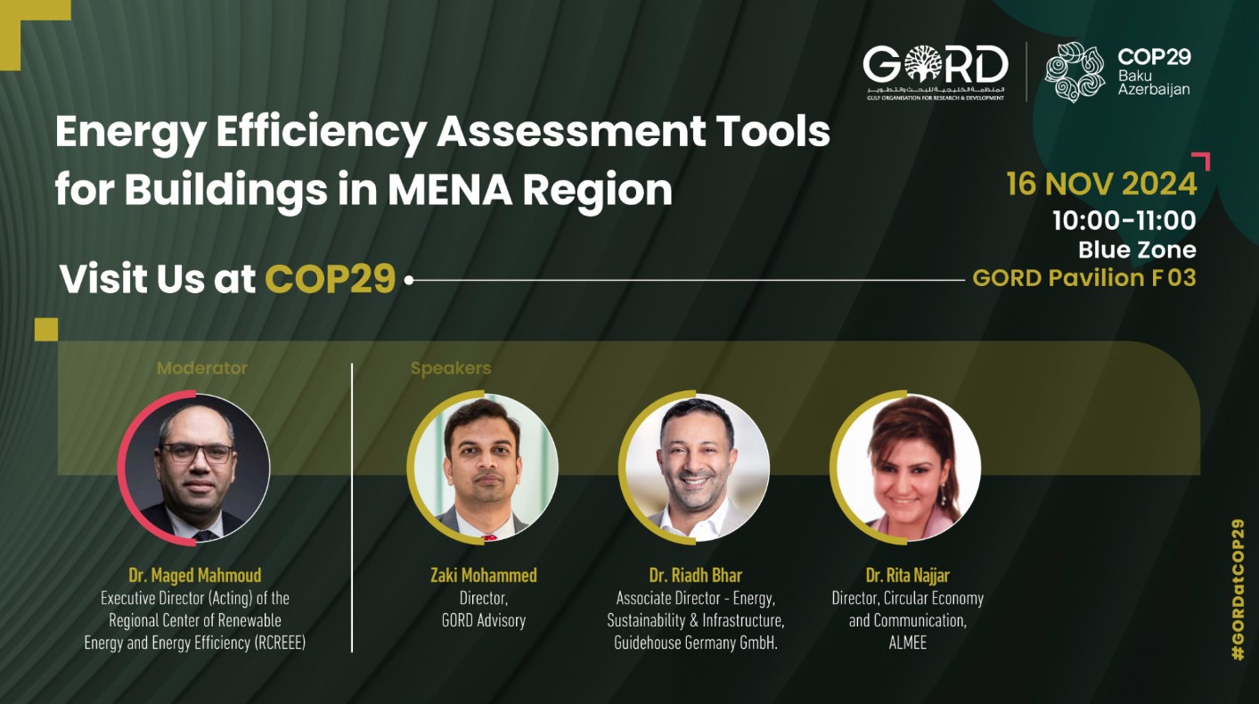 The second panel, organised by Gulf Organisation for Research & Development (GORD) on November 16th, provided an excellent platform to dive deeper into the BEP Tool's features and its holistic approach. Moritz shared how the tool facilitates matchmaking between project developers and financial institutions, streamlining the path to sustainable building projects. This session also highlighted other regional-specific tools developed for the MENA region, sparking discussions on the rise of energy efficiency and sustainability certifications.