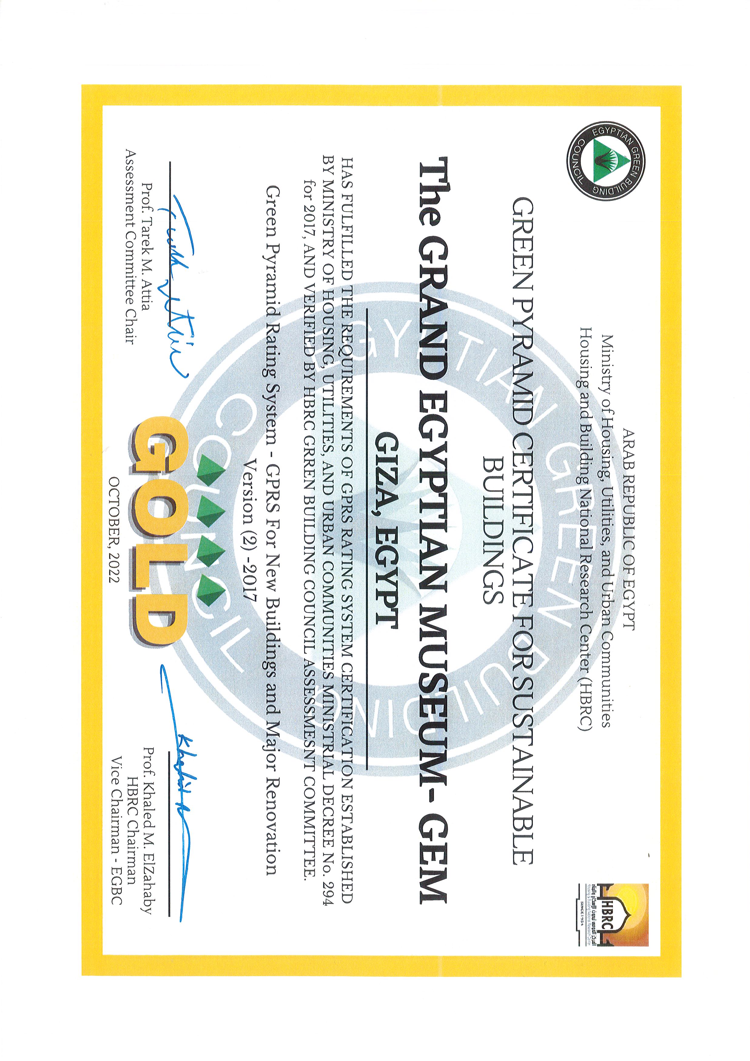 حصل اليوم المتحف المصري الكبير على الشهادة الذهبية للبناء الأخضر والاستدامة وفقا لنظام الهرم الأخضر المصري.